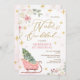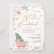 Cute Pink Sleigh Winter Onederland 1st Birthday Invitation
