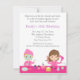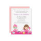 Planning an all girls birthday party for the birthday girl? Invite your female guests for a day of pampering with manicure, pedicure, facials, hair styling and more with this cute spa party theme invitation. It comes with two girls in pink bathrobes, one applying a facial mask to her face while the other is grooming her hair with a comb and hair dryer. The table has many items for grooming, ranging from mirrors, nail polishes, styling and facial products, lipstick, perfume and tissue box. Girly colour scheme of pink and purple, this is a perfect party theme to pamper the birthday girl! Throw this party at a salon or at home!