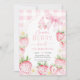 Cute Pink Strawberries Berry Sweet 4th Birthday Invitation