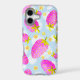 Cute Pink Strawberry iPhone Case | Kawaii Pastel Blue Fruit Pattern Cover