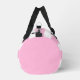 Cute girly duffle bag design. This design features Personalized text in modern hot pink script and pattern of white stripes on a light pink background. You can personalize with a first or last name. This modern girly hot pink duffle bag will be perfect as personalized gift.