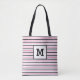 Cute Pink Stripes Custom Single Initial Black Tote