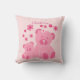 Adorable pink teddy bears on pink throw pillow personalised with your child's name.