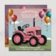 Cute Pink Tractor Birthday Card Invitations & Announcements.