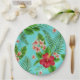 Cute Pink Tropical Hibiscus Flower On Turquoise Paper Plate