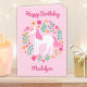 Cute Pink Unicorn Flowers Personalized Birthday Card