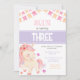Adorable kid's birthday invitations featuring a cute watercolor unicorn with pink orange bunting flag and little stars on a white back drop. ideal for your little girls' birthday party!