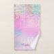 Cute Pink Unicorn Rainbow Glitter Drips monogram Bath Towel Set