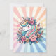 Unicorne magique rose doux et turquoise, fleurs et coeurs invitations personnalisées pour les fêtes d'anniversaire de petite fille. Une jolie licorne entourée de fleurs et de coeurs. Mignonne pour toute petite fille qui aime les licornes et les fleurs!