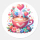 Cute Pink Whimsical Coffee & Hearts Classic Round Sticker