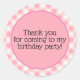 Cute pink and white chequered / gingham birthday party thank you stickers.