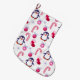 Cute Pink & White Christmas Pattern with Penguins Large Christmas Stocking