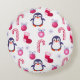 Cute Pink & White Christmas Pattern with Penguins Round Pillow