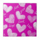 Cute Pink White Scribbled Hearts with Love Script Tile