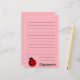 This lined stationery has a cute ladybug in the lower-left corner. The pink paper also has display text at the bottom. You can edit the black text to show the recipient's name.