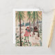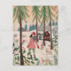Cute pink woman & rabbit snow village holiday postcard
