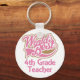 Cute Pink Worlds Best 4th Grade Teacher Keychain