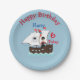 A cute paper plate for all those kids having a pirate themed birthday party. A skull and cross bone flagged ship with a pirate and his parrot on board a fun nautical design . Don't forget to change the name, age and message if required, there's no extra cost.