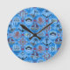 This Cute Pirates wall clock has a cute pirate knitted sweater pattern based off of the theme of classic Fair Isle knitted designs. The pattern is of blue and light blue circles and diamond stripes. Each shape has different cute pirate motifs in it. You have cute angle fish, shark, skull cross bones with pirate hat and a kraken monster in the circles. In the diamonds shapes you have pirate ship in the ocean, chain and anchor, boat wheel, and a deserted tropical island. In-between the pattern are little fish and crabs. The numbers are in matching colours to the pattern.Knitted