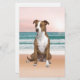 Cute Pitbull Dog Sitting on Beach with sunset Stationery