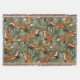 Cute Playful Foxes in Red Brown on Olive Green Throw Blanket