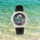 Stylish watch with white numerals that features the photo image of a pair of cute Sea Otters playing with a ball toy. Select your watch from several styles.