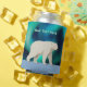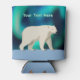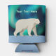 A cute polar bear (Ursus maritimus), done in a simple primitive, or naive style, walks on the polar ice, the Aurora Borealis (Northern Lights) glow brightly in the background. Customize by adding your own text.