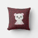 Modern cute polar bear cartoon on black and red diamond pattern Throw Pillow. Red diamonds have pyramid shapes seen from above.