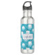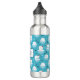 Water bottle with a cute Christmas pattern featuring polar bears standing on floating ice wearing red santa hats. Little igloos, snowflakes and fish surround these adorable polar bears chilling on the water. Light blue background. Cute and whimsical holiday design.