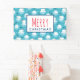 A banner which says Merry Christmas - with a cute Christmas pattern featuring polar bears standing on floating ice wearing red santa hats. Little igloos, snowflakes and fish surround these adorable polar bears chilling on the water. Light blue background. Cute and whimsical holiday design.