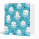 A binder with a cute Christmas pattern featuring polar bears standing on floating ice wearing red santa hats. Little igloos, snowflakes and fish surround these adorable polar bears chilling on the water. Light blue background. Cute and whimsical holiday design.