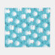 A blanket with a cute Christmas pattern featuring polar bears standing on floating ice wearing red santa hats. Little igloos, snowflakes and fish surround these adorable polar bears chilling on the water. Light blue background. Cute and whimsical holiday design.