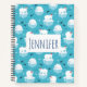 Spiral notebook with a cute Christmas pattern featuring polar bears standing on floating ice wearing red santa hats. Little igloos, snowflakes and fish surround these adorable polar bears chilling on the water. Light blue background. Cute and whimsical holiday design.