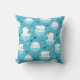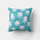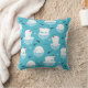 A pillow with a cute Christmas pattern featuring polar bears standing on floating ice wearing red santa hats. Little igloos, snowflakes and fish surround these adorable polar bears chilling on the water. Light blue background. Cute and whimsical holiday design.
