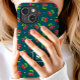 This adorable design features bright red cherries and white polka dots against a sleek teal background, perfect for those who love a playful and bold style. The vivid cherries add a pop of colour and charm, while the black backdrop creates a striking contrast. A personalized monogram adds a unique and stylish touch, making this design both fun and functional. Ideal for adding a cheerful and whimsical vibe to your accessories collection.
