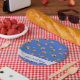 Great accent for an outdoor summer party. Bright colors, vibrant floral design