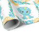 Cute Prince Teal and Yellow Dinosaur Baby Shower Wrapping Paper