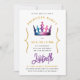 Cute Princess Crown Tiara Purple Watercolor Invitation