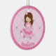 This adorable, personalized pink princess Christmas ornament features a pretty brunette little girl wearing a beautiful pink ball gown. Customize this cute children's gift with your child's name and age in lovely typography. Add your kids photo on the back.