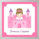 Decorate a girl's room with this cute poster piece which is great for a princess themed room. It has a princess in a white and purple gown with a pink tiara in the middle of a cardboard pink castle. Personalise with child's name. Girly and sweet colour palette of pink and purple.