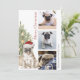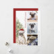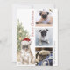 This cute Pug themed Christmas card features a pug wearing a Santa hat sitting in front of a lit Christmas tree. The greeting on the card reads "Merry Christmas" and can be personalized. Further personalize this holiday card with three photos of your pet dog, a signature and the year.