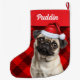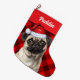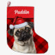 Cute Pug Dog Red Buffalo Plaid Custom Large Christmas Stocking