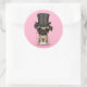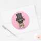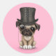 Cute Pug Puppy with Monocle and Top Hat Pink Classic Round Sticker