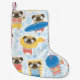 Cute pugs on vacation. pattern with cartoon pug on small christmas stocking