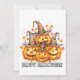 This Halloween party invitation features an illustration of a gang of pumpkins. This festive invitation can be easily personalized to display when, where and a short list of Halloween party details you can customize to make this card one of a kind.