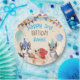 Cute puppies puppy party let's paw-ty personalized name paper party plates, very cute nice for dog loving people. Blue colours for a boys birthday.
