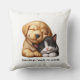 Cute Puppy and Kitten Cuddling Best Friends Throw Pillow