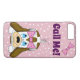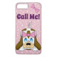 Adorable cute puppy with a pink bow and purple polka dots looking up with a wagging tail, those big blue eyes and brown floppy ears saying "Call Me"! makes up this pink cell phone cover. Background is white polka dots. Completely customizable so you can change the colours and text or add your own personal touch.