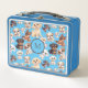 A cute Puppy Dog pattern design with watercolor illustrations of different dog breeds such as , Dalmatian, German Shepherd, Bulldog, Pug, Poodle, Spaniel. With a blue background. Just add an initial for a monogrammed gift to make a great lunch box for dog lovers and students.