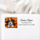 Seasonal Autumn return address labels. A sweet little puppy dog playing in a pile of Autumn leaves. He's peeking out adorably as he hides in the pile of leaves.